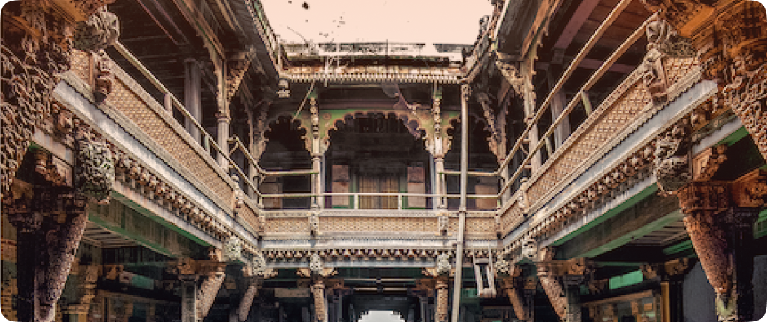 These indigenous havelis have evolved a collective functionality appropriate to the needs of the joint family system and to the domestic patterns of middle and upper class urban communities in Gujarat.
